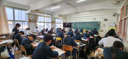 数学の授業では、因数分解に取り組んでいます。 真剣に問題に取り組んでいます。