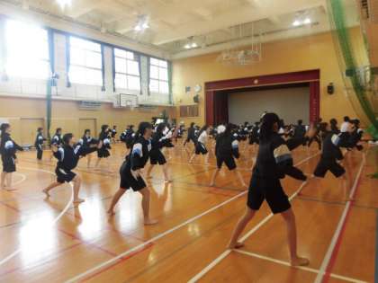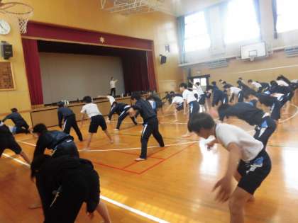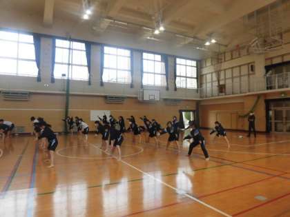 ソーラン節の練習をしています。太鼓の音に合わせて、揃えていきます。