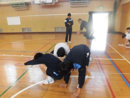 新体力テストをしています。記録用紙には、昨年までの2年間の記録もあるので、どれだけ記録が伸びたかがよくわかります。