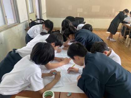 1年生は放課後の時間帯を使って体育大会の学級旗作成が始まりました!