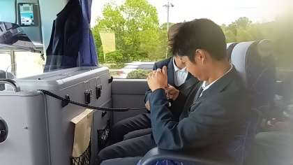 渋滞に巻き込まれましたが、レク係が考えたクイズなどをしました。急遽、イントロクイズや心理テストをしました