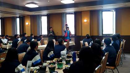 退館式の後、このあとに行うラフティングについての説明をしていただきました。