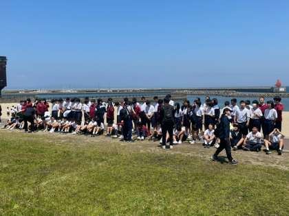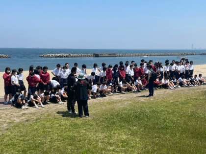 磯の香りがする中で、学年全体写真を撮りました!