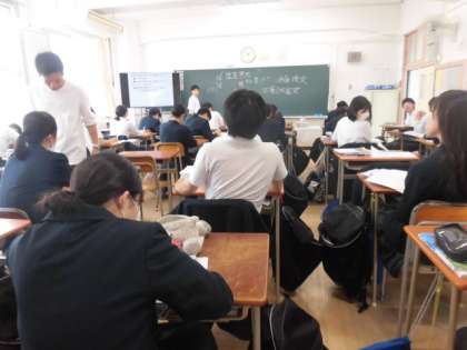 テスト前の復習を行っています。人名や地名について、漢字も覚えていきます。