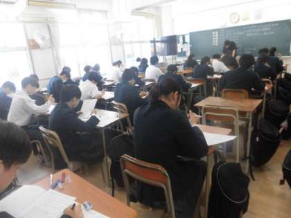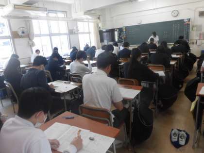 今日は3年生になり、初めての実力テストが行われています。みんな真剣に問題に取り組んでいます。