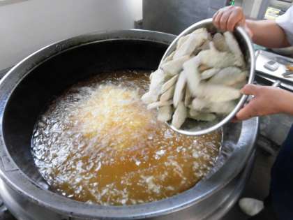 ・サーモンフライ ・豆乳スープ ・きゅうりのバジル風味サラダ ・コッペパン ・みかんジャム ・牛乳 です。