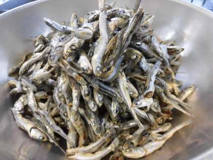 「みそ汁」には、今日はにぼしでとっただしを使っています。