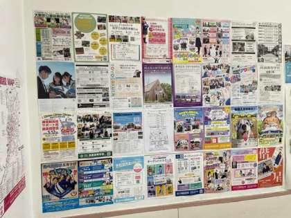 北館廊下や3年生教室にはたくさん高校紹介のポスターやチラシが掲示されています!