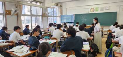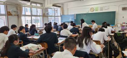 グループに分かれパラグラフが何について述べているか話し合いの様子です。