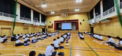 進路担当の先生より進路説明が実施されました。個々に進路先、受験形態もさまざまですので、細かく説明がなされました。高校受験は、勉強の終わりではなく始まりです。目標は、入ることではなく卒業をすることであり、後悔する進路選択にならないように、しっかりと考えることなどを話されました。