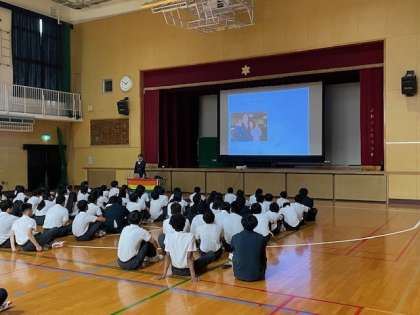5月の教職員向けの講演に引き続き、今日は2年生を対象として、Life Journey代表であり、LGBT講演家の藤原直さんに再度来ていただき、「LGBTQと性の多様性」を当事者の実体験話を交えながら、お話していただきました。