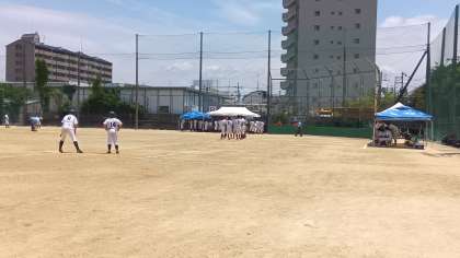 その後、同点に追いつかれました。粘り強さを見せていましたが、4回コールド、1対11で敗けました。暑い中、よくがんばりました!