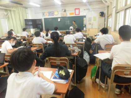 光の屈折について学習をしています。光がどのような角度で入るか、様々な場合について考えています。