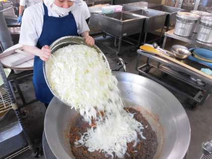 ・牛丼 ・もやしとピーマンのごまいため ・大福豆の煮もの ・牛乳 です。