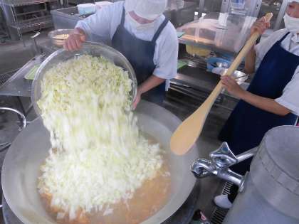 ・かぼちゃのミートグラタン ・鶏肉と野菜のスープ ・みかん(冷) ・黒糖パン ・牛乳  です。