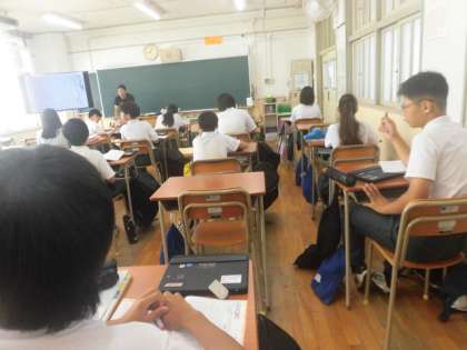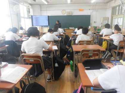 文の構成について学習をしています。文の段落分けをしたり、文節に区切ったりしています。