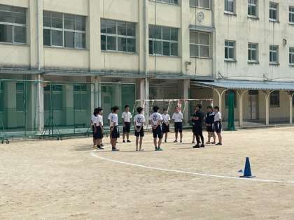 グランドでは陸上部、体育館では、女子バレー部が活動していました。
