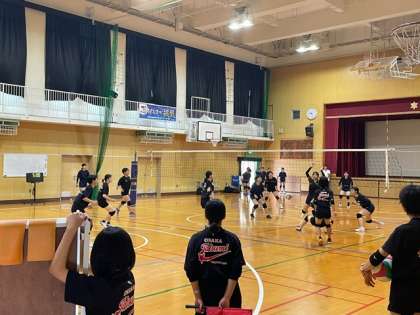 女子バレー部は練習試合です。明後日の試合に向けて強化中!