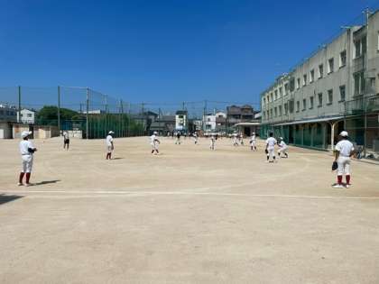 グランドでは野球部と陸上部が活動していました!休憩時間を増やしながら、控え室も準備しできるトレーニングを行っています!