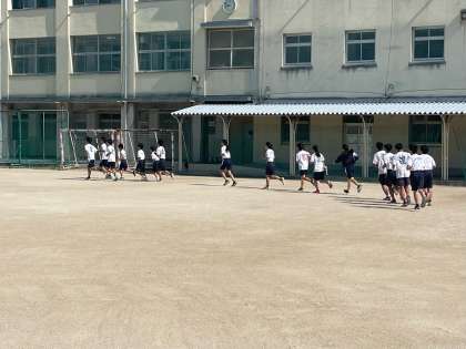 サッカー部は加美中学校のグランドで合同練習を行っています。