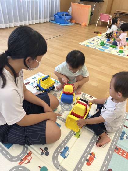 保育園の様子です。 子どものペースに合わせて、一緒に遊んであげることも仕事です。