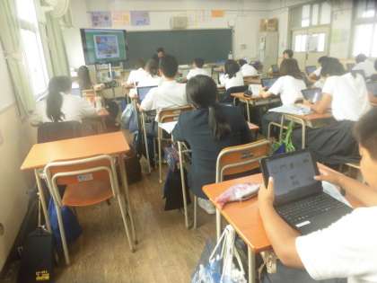 おすすめの本のポップをつくっていくのに、タブレットで参考になる上手な作品を調べています。