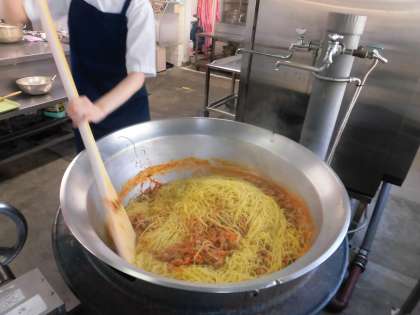 ・イタリアンスパゲッティ ・グリーンアスパラガスとコーンのサラダ ・カレーフィッシュ ・ミニコッペパン ・牛乳 です。