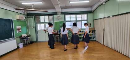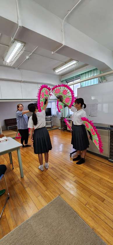 扇の舞いは、花の絵が描かれた羽のついた扇を利用し躍動感あふれる優雅な動きです。様々な気持ちを表現できるように練習中です。波の練習は、ソンセンニムより身体の前で、動くように教えてもらいだんだん上手になっています。