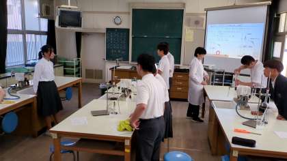 理科の授業では、ワインの蒸留・ウミホタルの観察・炎色反応の実験を行っています。