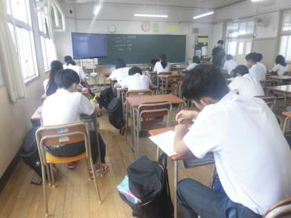 留守電に残された、職場体験に関するレポートをどうするかについてのメッセージの内容を、確認しています。