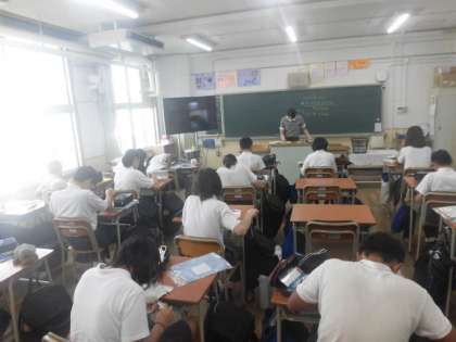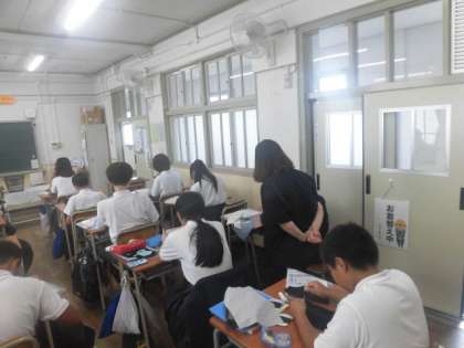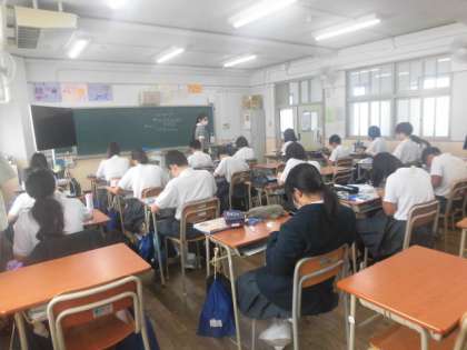 チャック付の布のかがり縫いをしています。みんな黙々と課題に取り組んでいます。