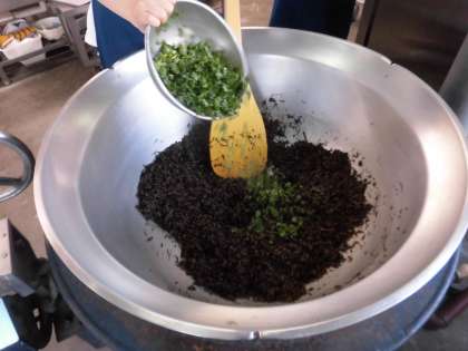 牛肉とひじきを甘辛く味つけし、しそで風味をつけたそぼろです。
