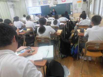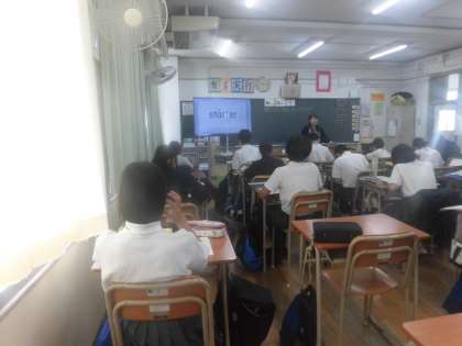 教科書で新しく習う単語について、書いたり、声に出したりしながら覚えていきます。元気な声で発声練習をしていました!