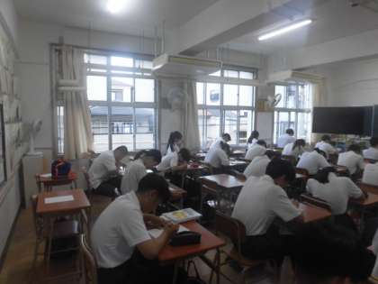 二次方程式の問題を解いています。みんな黙々と一生懸命、問題に取り組んでいます。