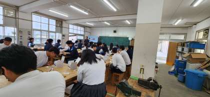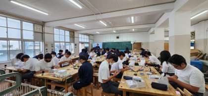 技術は、製作実習です。オーロラクロックの作成をしている様子です。繊細な作業を丁寧に頑張っています。