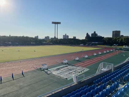 本日、秋晴れの下、ヤンマーフィールド長居にて陸上部の1年生9名は下記の各競技に参加しました。