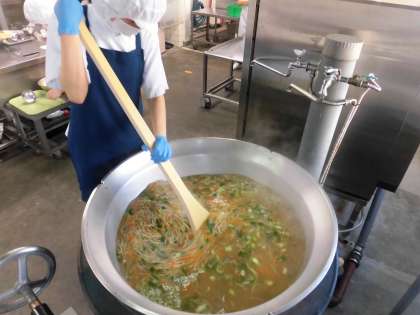 今日の給食はタンタンめん【肉みそ・汁めん】、あっさりキャベツ、豆こんぶ、コッペパン、ソフトマーガリン、牛乳  です。