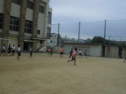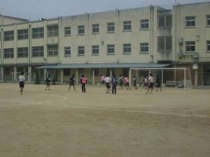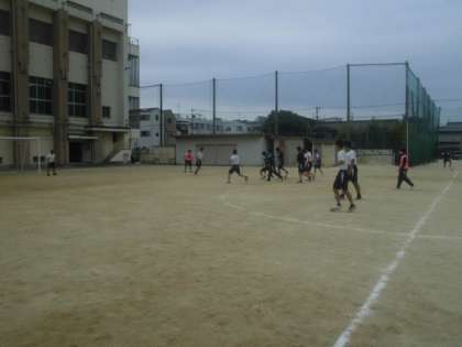 男子は運動場でサッカーの試合をしています。元気な声が職員室まで、よく聞こえていました!