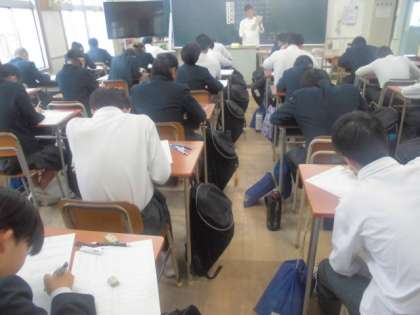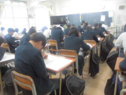 3年生は今日は実力テストです。1限数学、2限国語、3限英語、4限理科、5限社会です。文化発表会が終わったところですが、がんばりましょう!