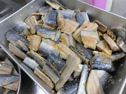 ・さごしの塩こうじ焼き ・みそ汁 ・えだまめ ・ごはん ・牛乳 です。