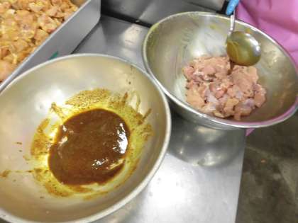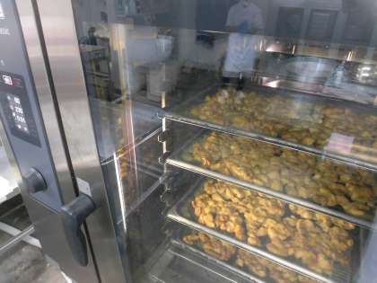 ・鶏肉のカレー風味焼き ・スープ煮 ・野菜のソテー ・コッペパン ブルーベリージャム ・牛乳 です。