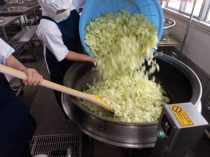 今日のソテーには、ピーマン、コーン、キャベツを使っています。