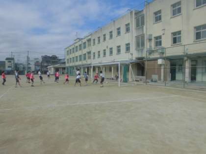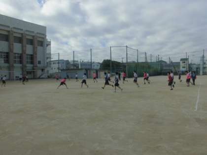 元気にサッカーをしています。少し人数が多いですが、声を出しながら、たくさん動いていました!