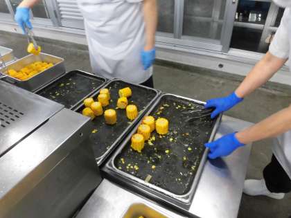 ・ウインナーときのこの和風スパゲッティ ・焼きとうもろこし ・固形チーズ ・ミニコッペパン ・牛乳  です。
