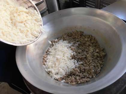 コチジャンは、米みそ、とうがらしなどから作られる食品です。韓国・朝鮮料理によく使われます。今日の給食では、豚肉とだいこんを使った「豚肉のコチジャンいため」に使って、甘辛い味にしています。