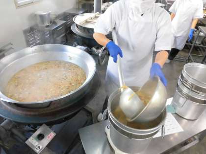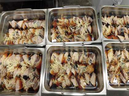 「なまりぶしのしょうが煮」は、ミニバットになまりぶし(かつおを蒸したりゆでたりしたもの)を入れて、焼き物機で蒸し焼きしています。
