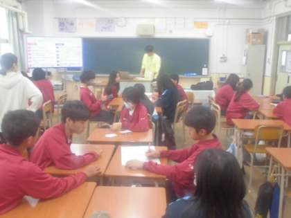 次に防災クイズキットを使って班ごとにクイズをしたり、地震に関するクロスワードを解いたりします。楽しみながら、学ぶことができました。