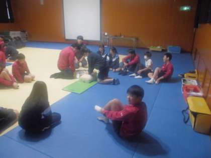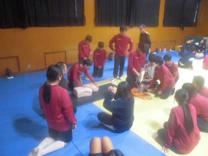 2年生は、まず動画で心肺蘇生やAEDの使い方について、学習をします。