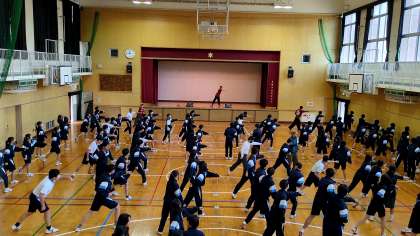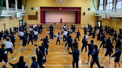 1時間で曲の前半のステップを教えてもらい、全体で通して踊ってみました。