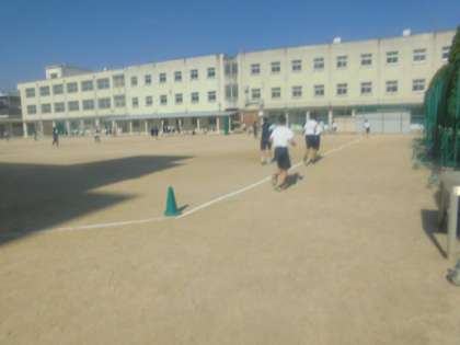 今日も3年生は持久走をがんばっています。みんな横につきながら、応援の声がよく聞こえてました。